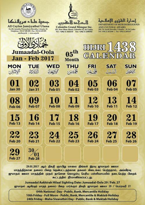 05 - Jumaadal Oola 1438 (Jan - Feb 2017)
