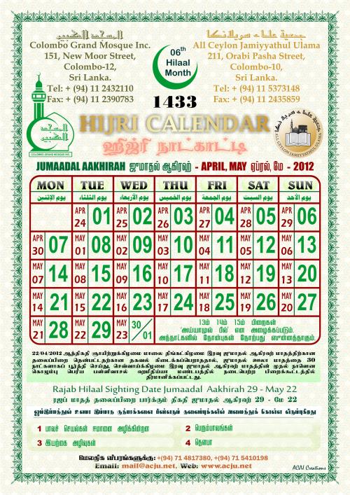Jumaadal Aakhirah 1433 (Apr-May 2012)
