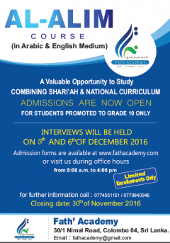 Islamic International Institue - Colombo / Application Form 2017