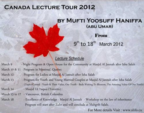 CANADA LECTURE TOUR 2012