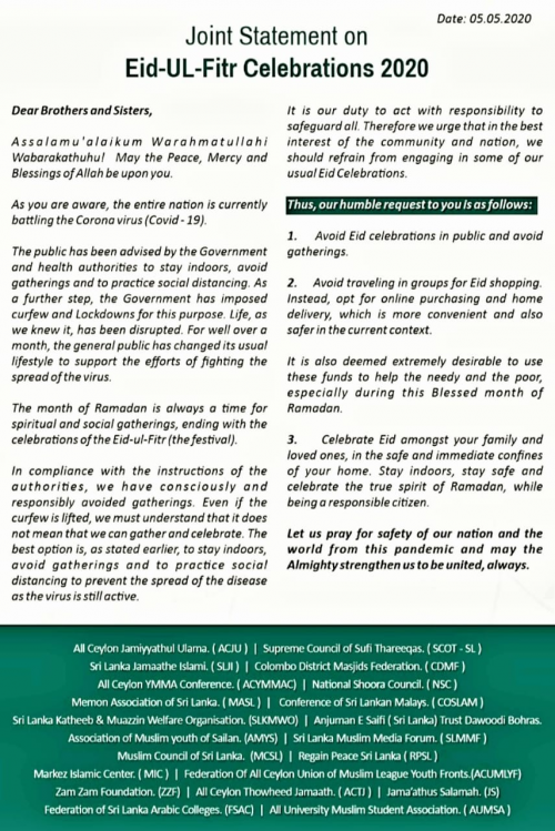 Guidance on Eid Ul Fitr celebrations 2020