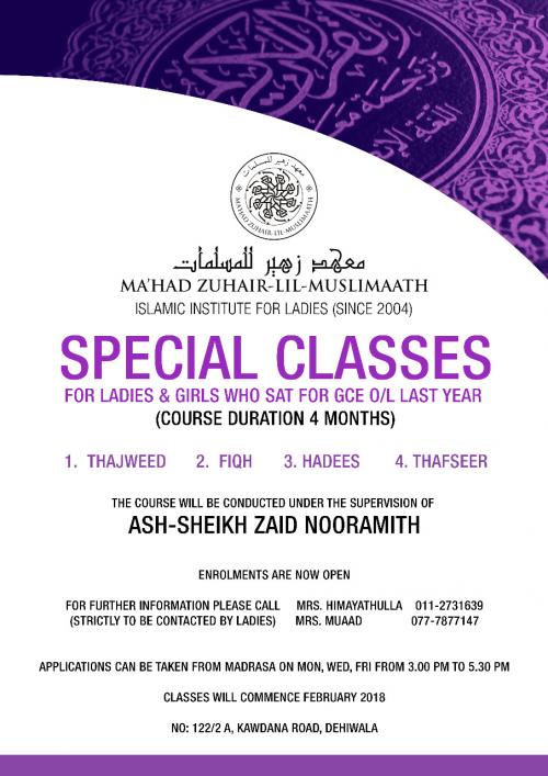 Special Classes For Ladies Conducted by Sheikh Zaid Nooramith
